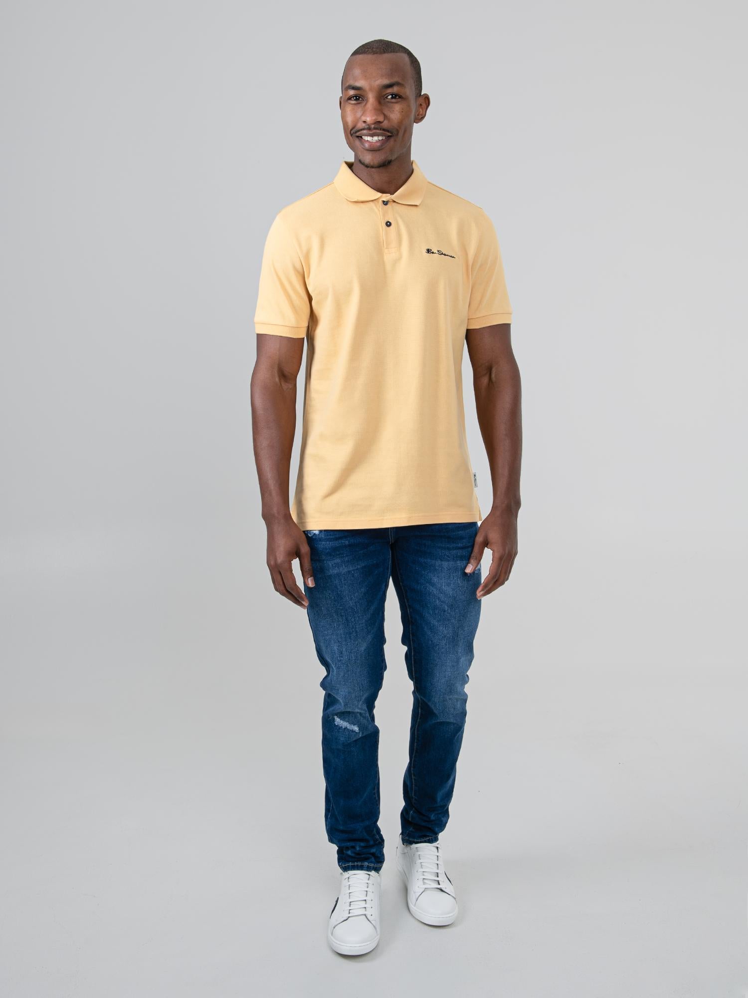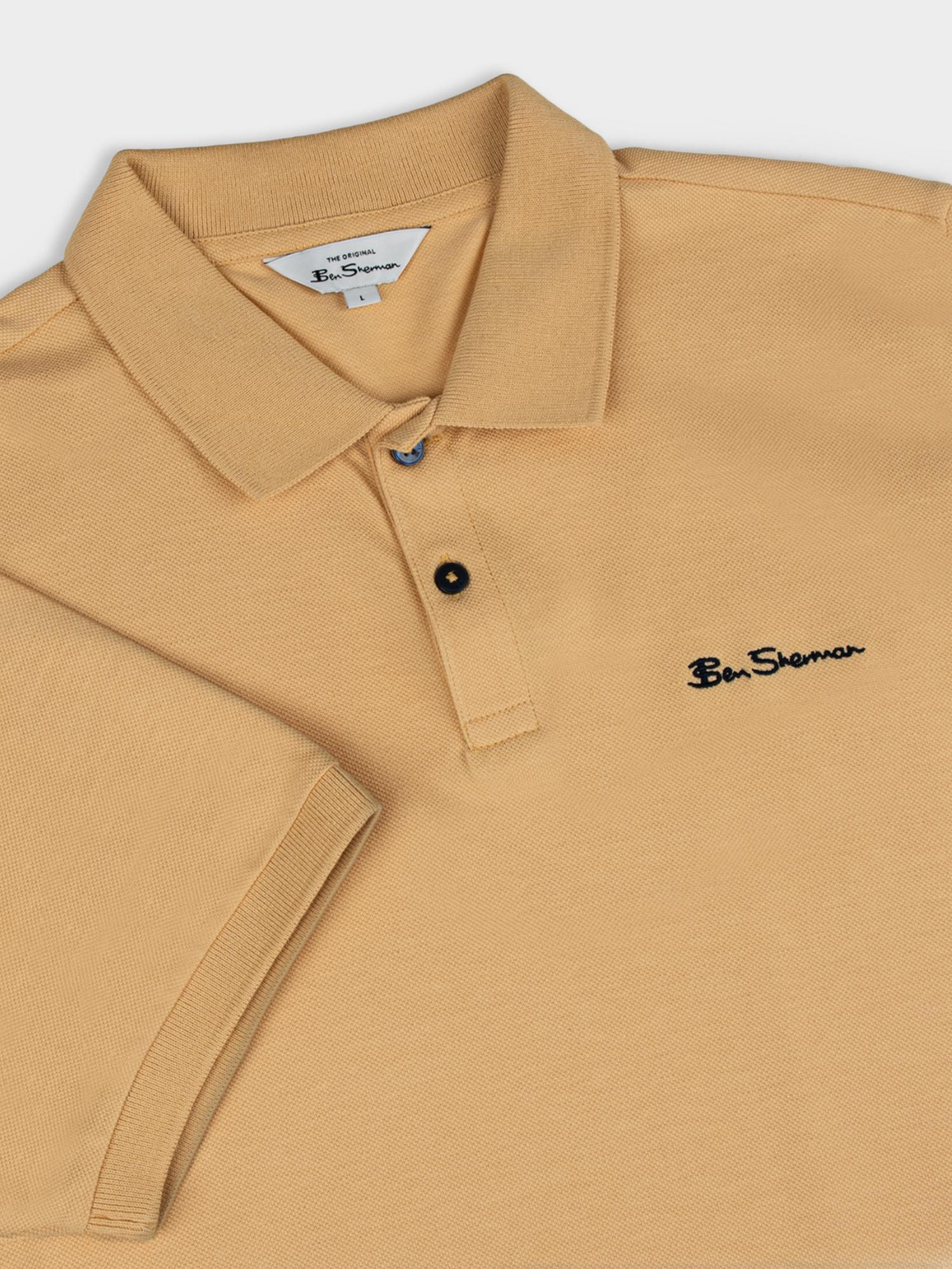 Short sleeve pique in a 2 button style. Branded with an embroidered Ben Sherman script. The polo is made with organic cotton and features a two-button fastening and a flat knit collar.