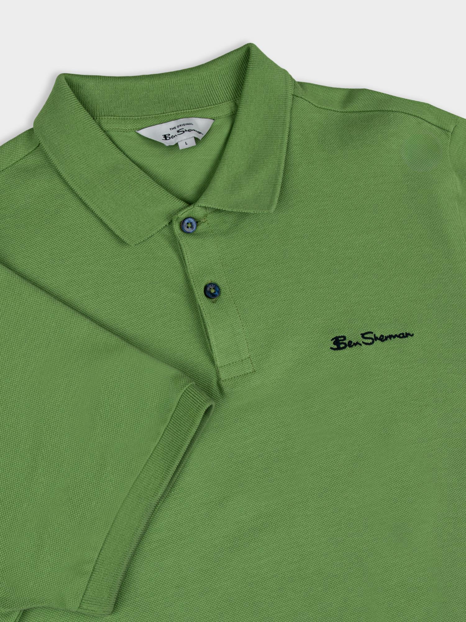 Short sleeve pique in a 2 button style. Branded with an embroidered Ben Sherman script. The polo is made with organic cotton and features a two-button fastening and a flat knit collar.