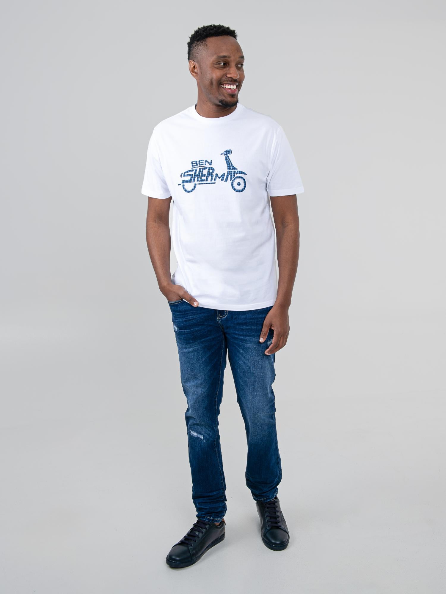 A nod to Ben Sherman’s British heritage with a playful twist. This tee features the signature logo reimagined in a bold scooter graphic — a modern homage to the brand’s mod-inspired roots. Finished with a classic crew neckline and clean silhouette, it’s an easy statement piece for everyday wear.