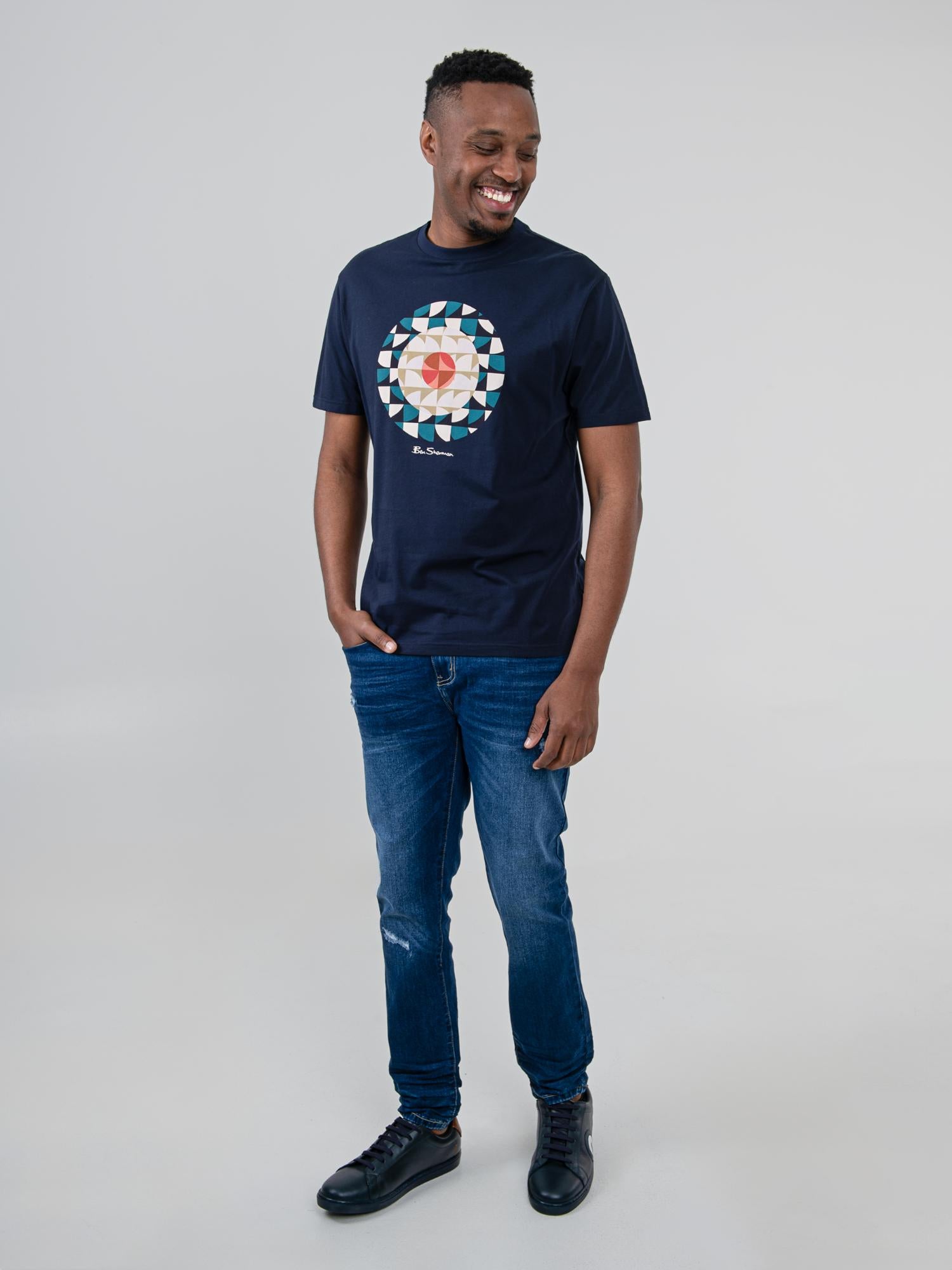Stand out in bold colour with the Ben Sherman Geo Target T-Shirt. Featuring a striking circular geometric print in vibrant tones, this men’s graphic tee fuses modernist design with Ben Sherman’s iconic Mod heritage. Crafted in soft cotton with a regular fit, it’s made for all-day comfort while adding a pop of personality to your casual wardrobe. Perfect for pairing with jeans, chinos, or layered under a jacket, this statement T-shirt is a versatile staple that brings retro-inspired style to everyday dressing.