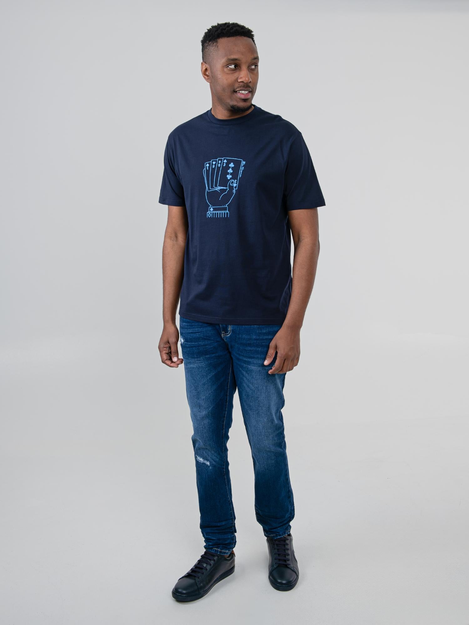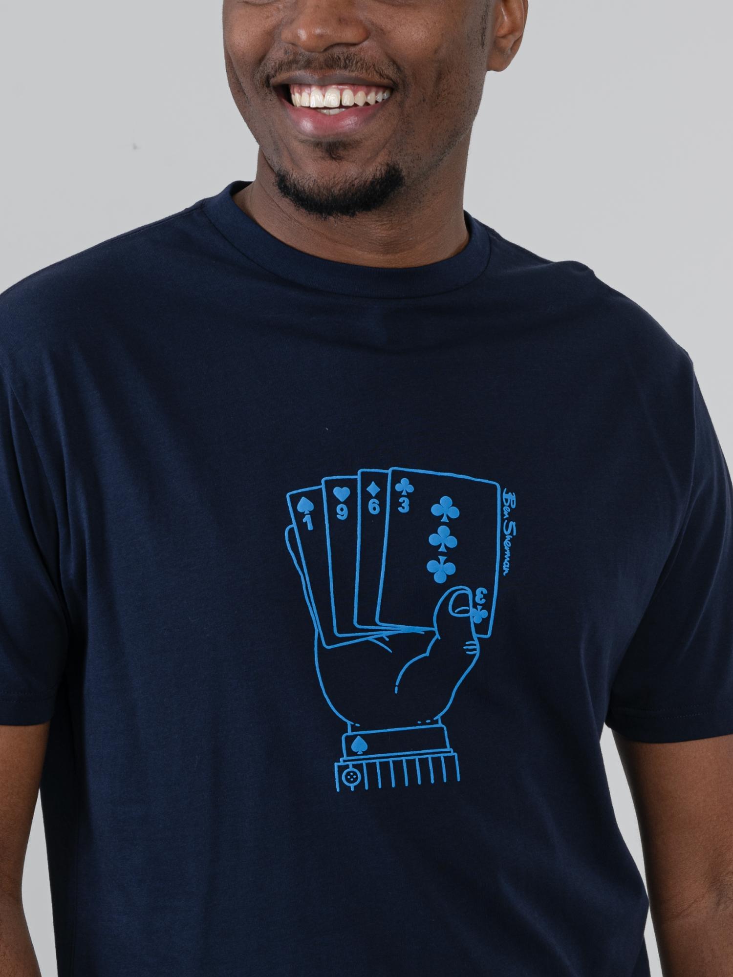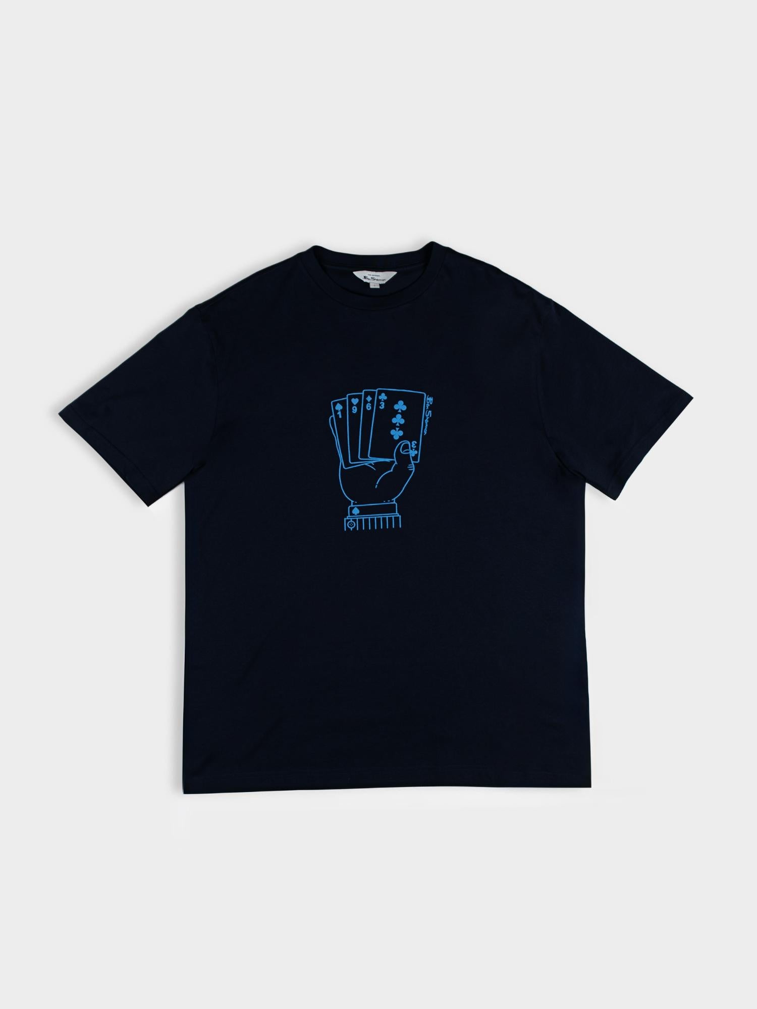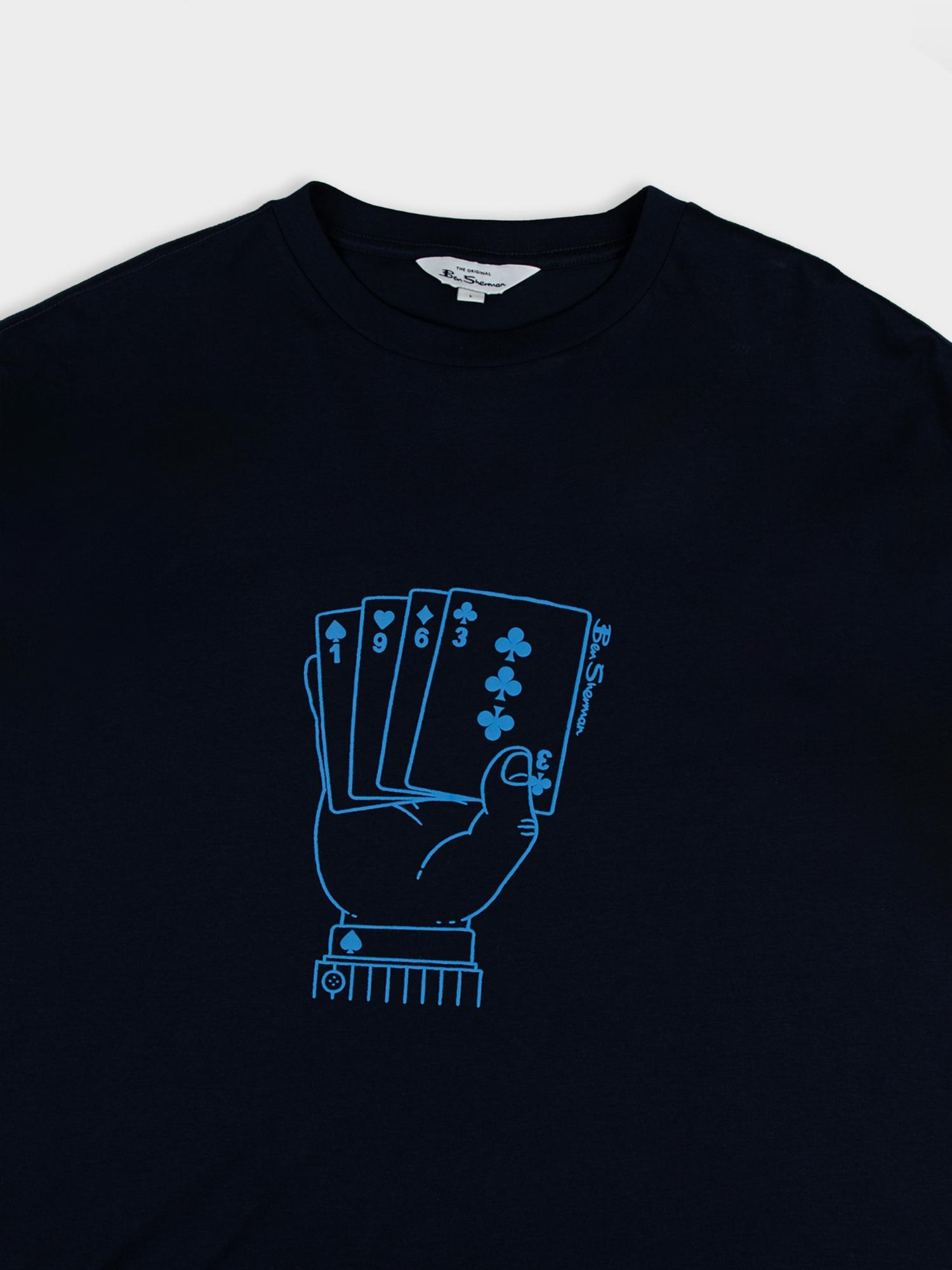 Play your style cards right with the Ben Sherman Hidden Ace T-Shirt, a bold graphic tee featuring a striking hand-of-cards print across the chest. Crafted from soft cotton for all-day comfort, this piece channels the brand’s heritage of sharp design with a modern graphic edge.