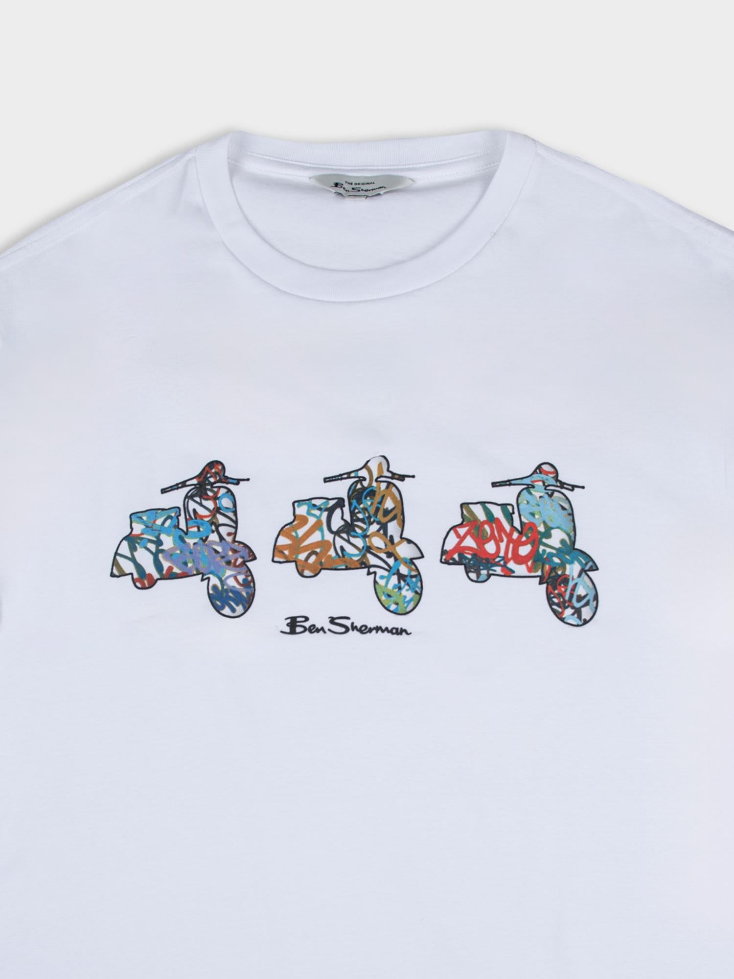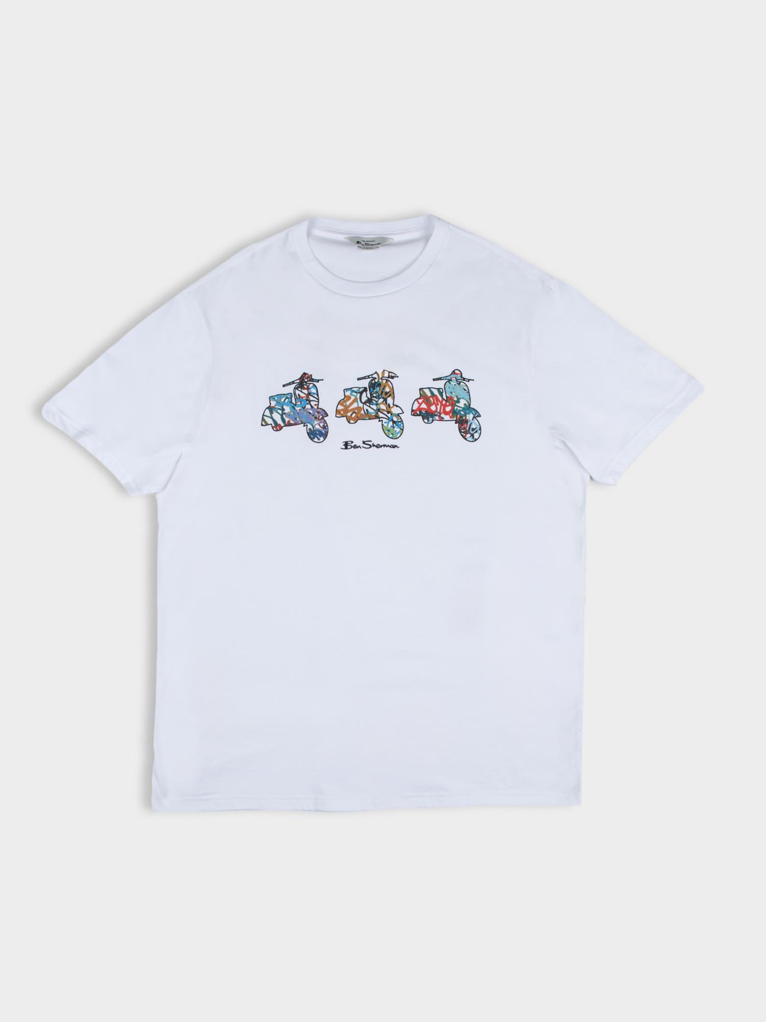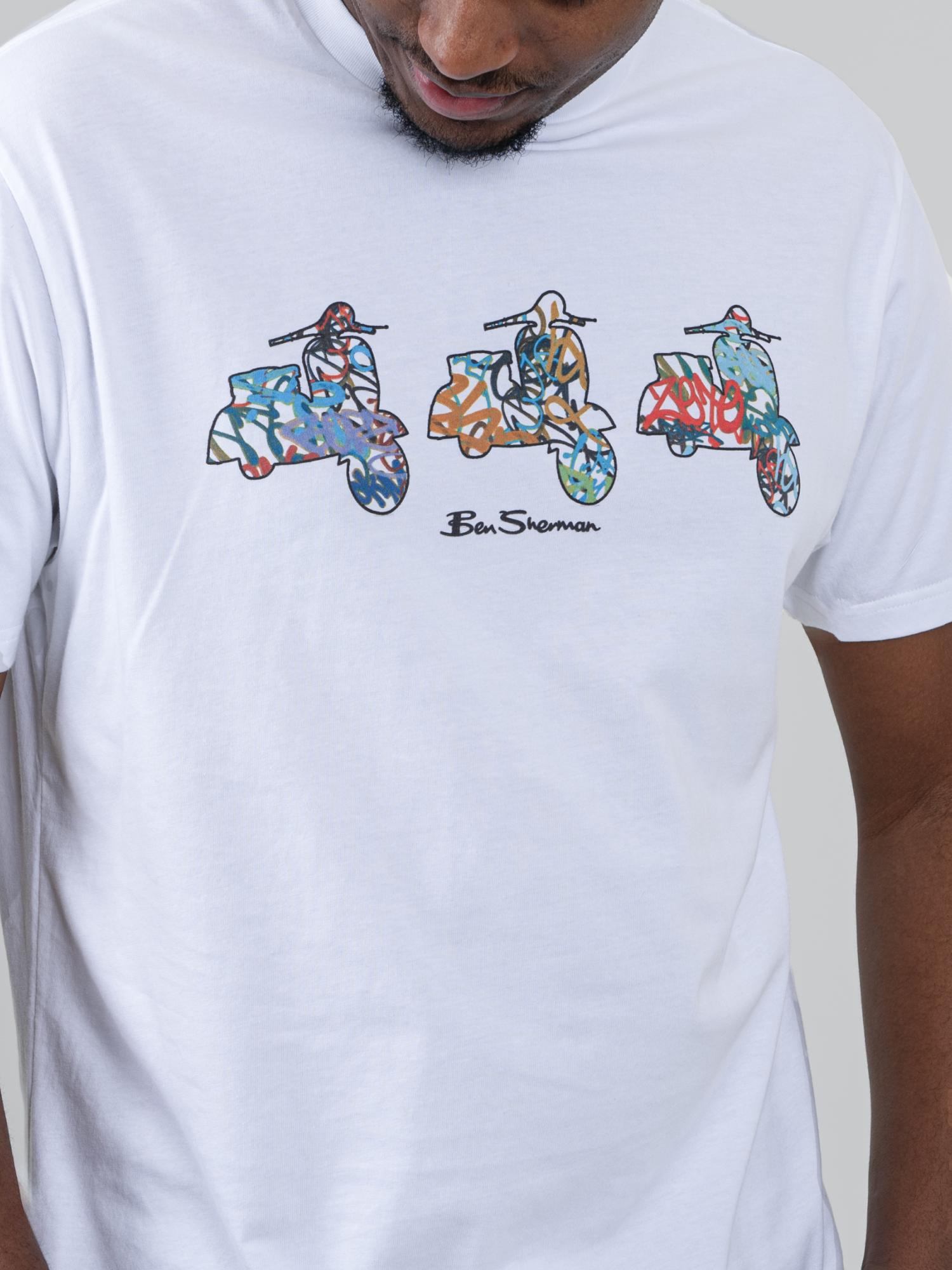 Add some colour and energy to your casual lineup with the Ben Sherman Scooter Spray T-Shirt. Featuring a trio of spray-paint inspired scooter graphics across the chest, this tee nods to Ben Sherman’s Mod roots while keeping things fresh and playful.