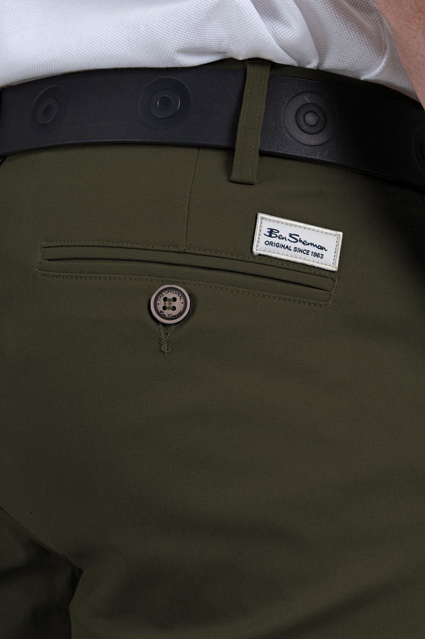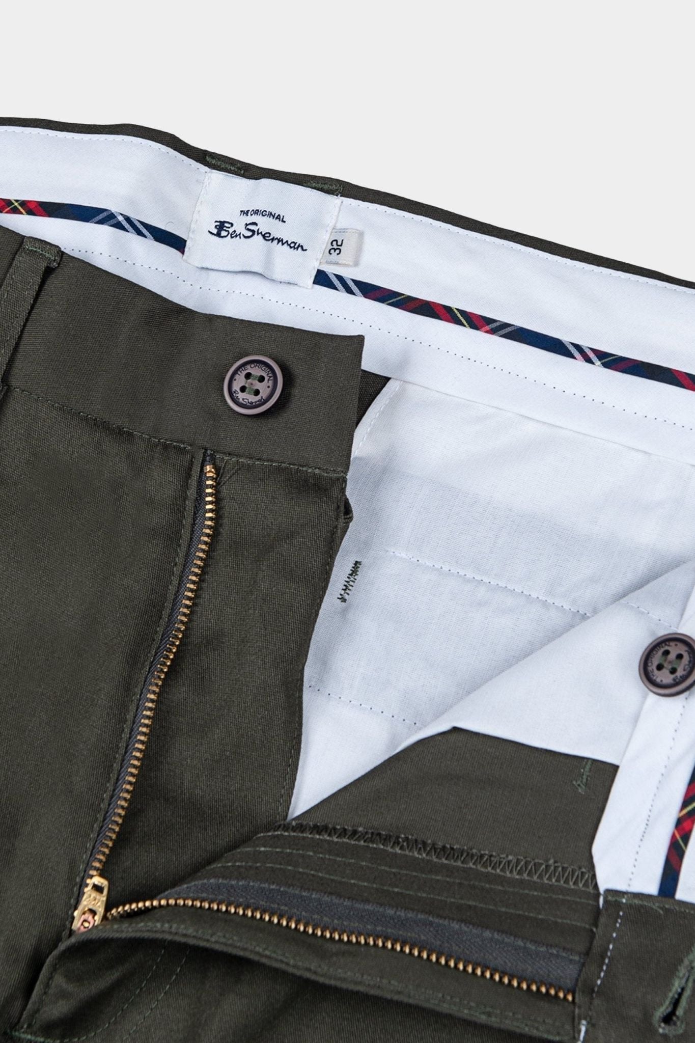 Cut to a slim fit in a soft cotton canvas, these chino pants feature a button and zip fly, slanted front pockets, and handy back pockets.