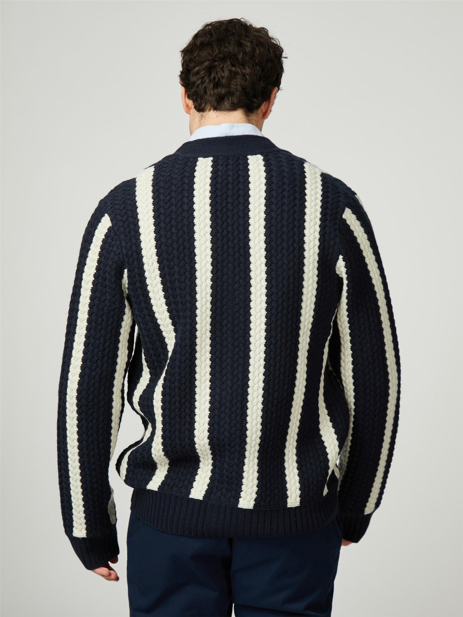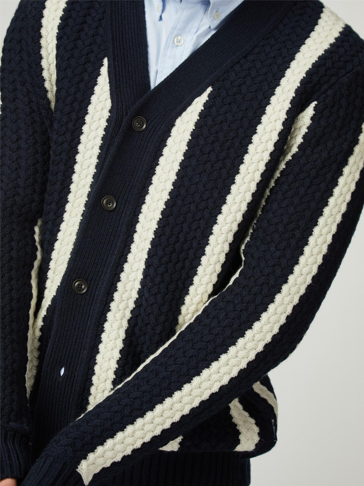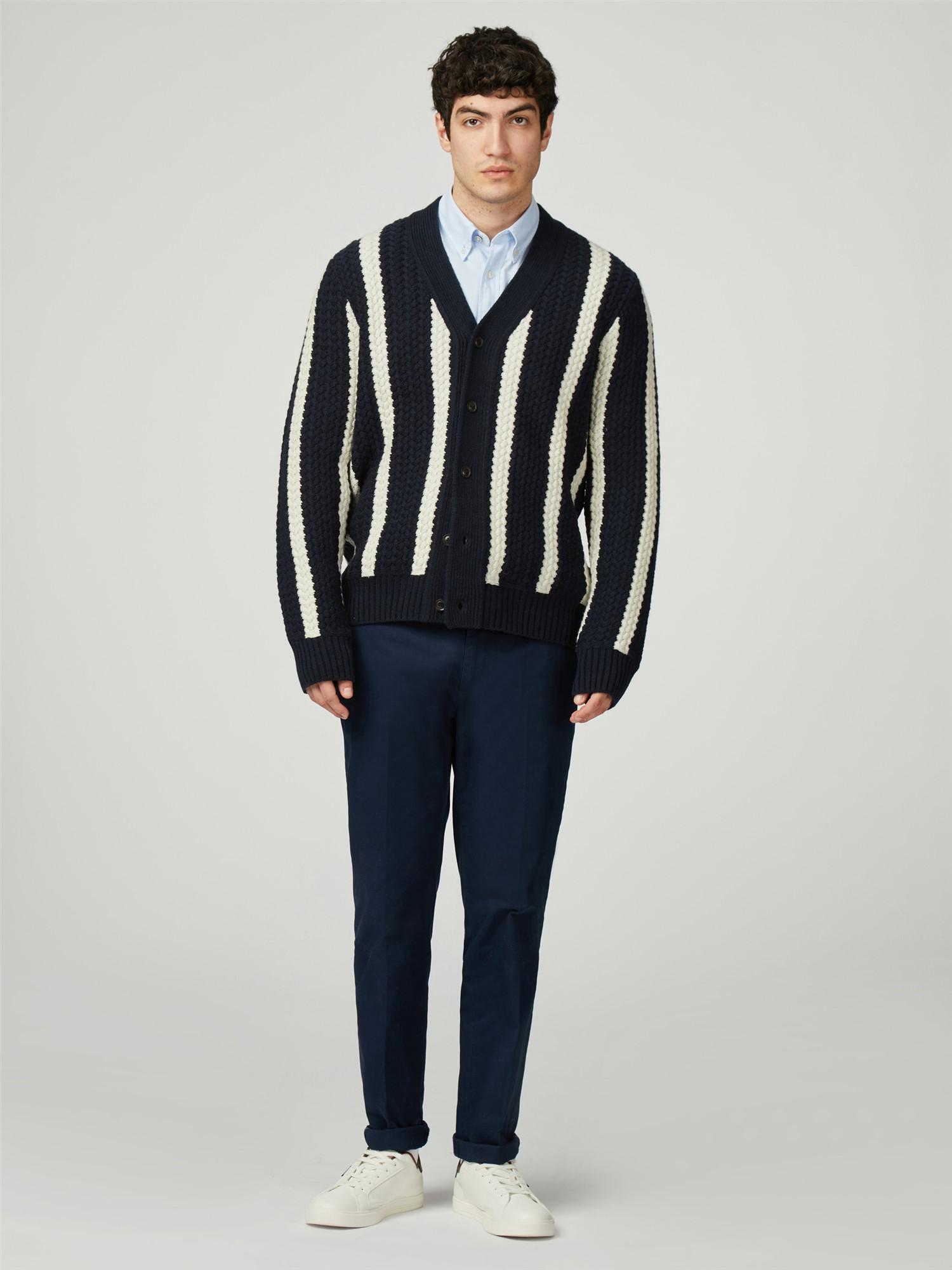This knitted textured stripe cardigan features a Ben Sherman™ branded woven label at the side seam. A regular fit, made from a wool blend.